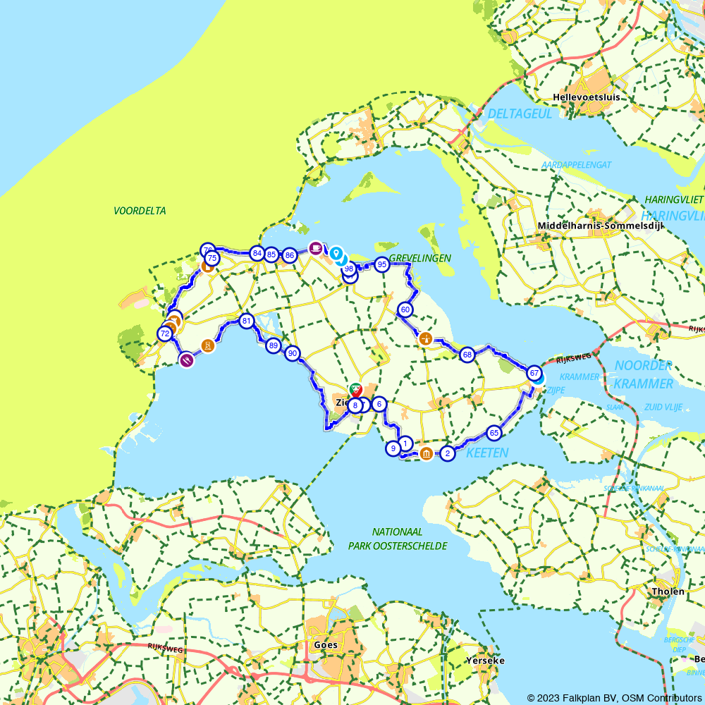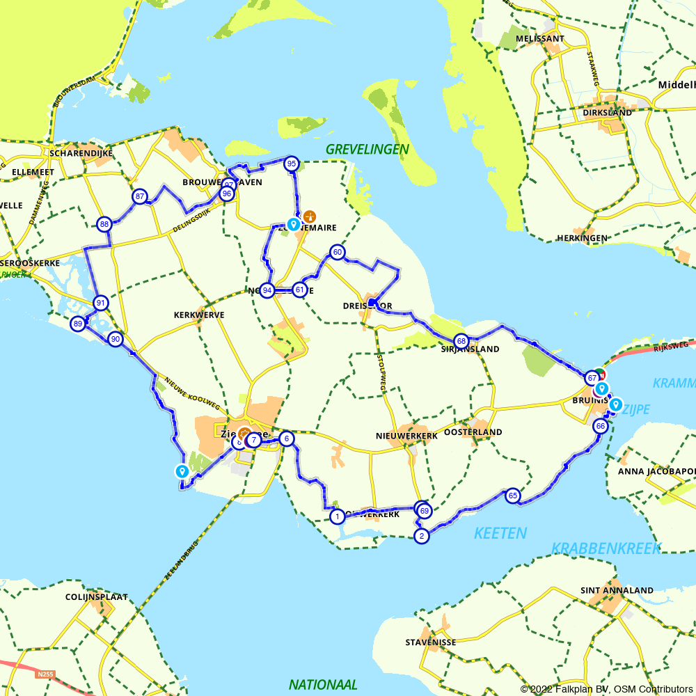 Zie de help knop voor meer uitleg. Deze fietsknooppunten fietskaart toont de in de provincie zeeland gelegen eilanden schouwen duiveland goeree overflakkee en sint philipsland. Volg de knooppunten 75 76 73 72 70 71 72 73 74 75 startpunt. Nog geen gebruikers waardering.